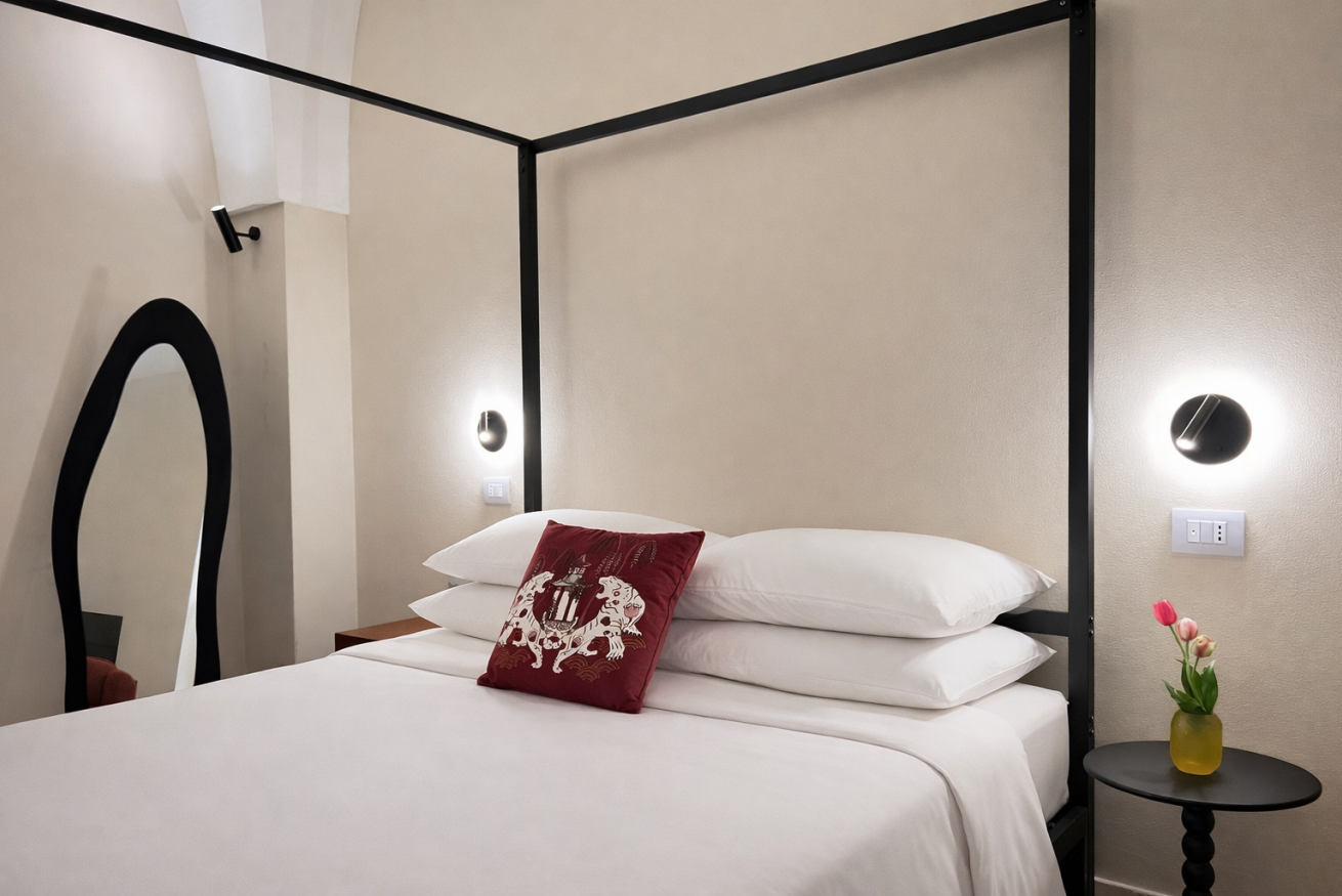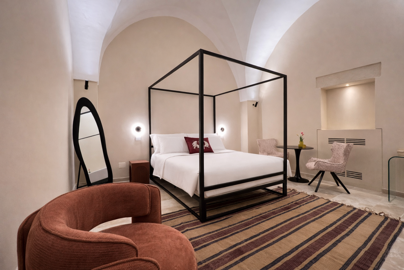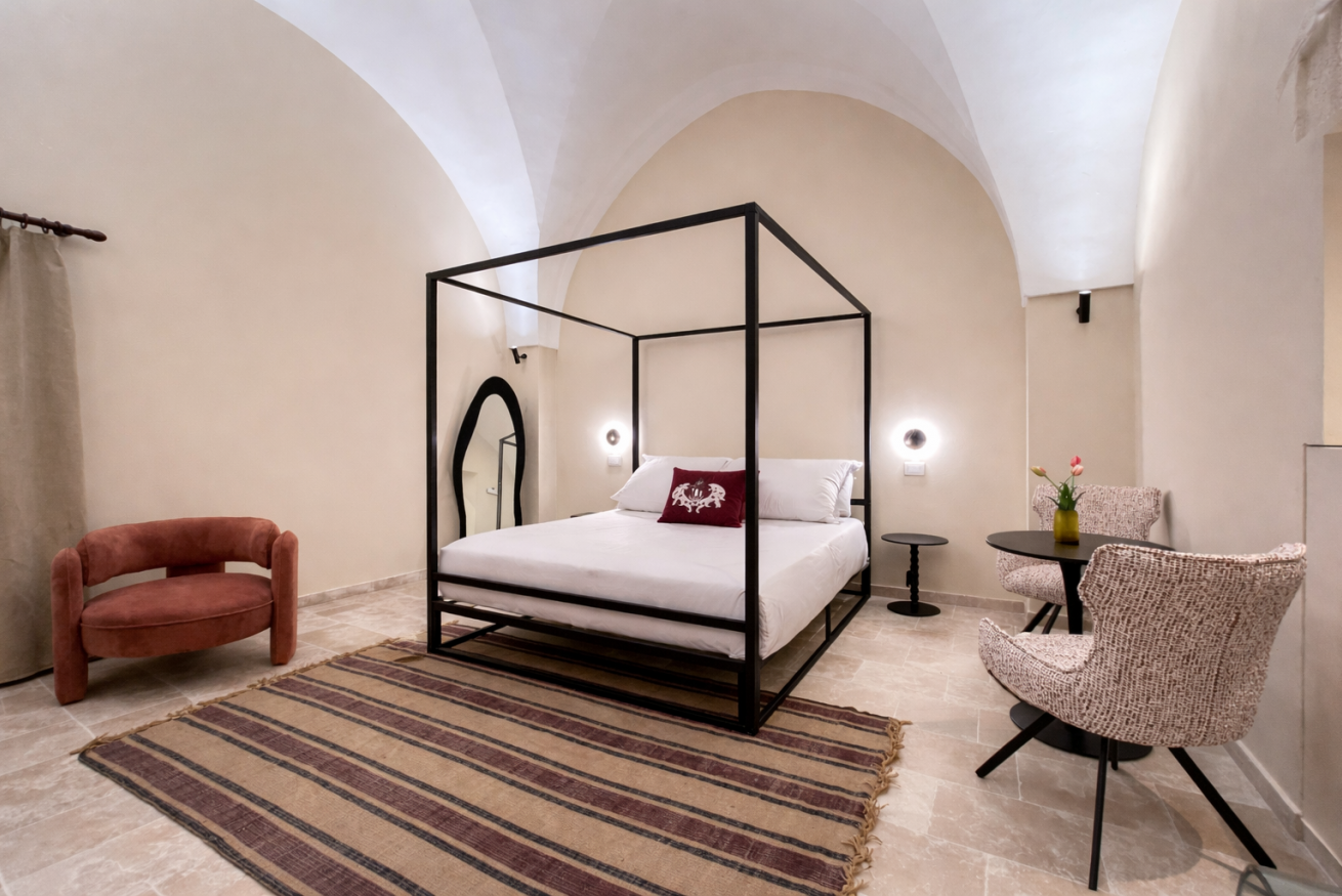 Un luogo essenziale ed elegante, dove il silenzio della pietra incontra il comfort contemporaneo, creando un’atmosfera intima e rigenerante.