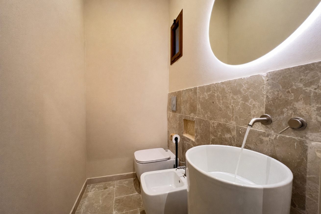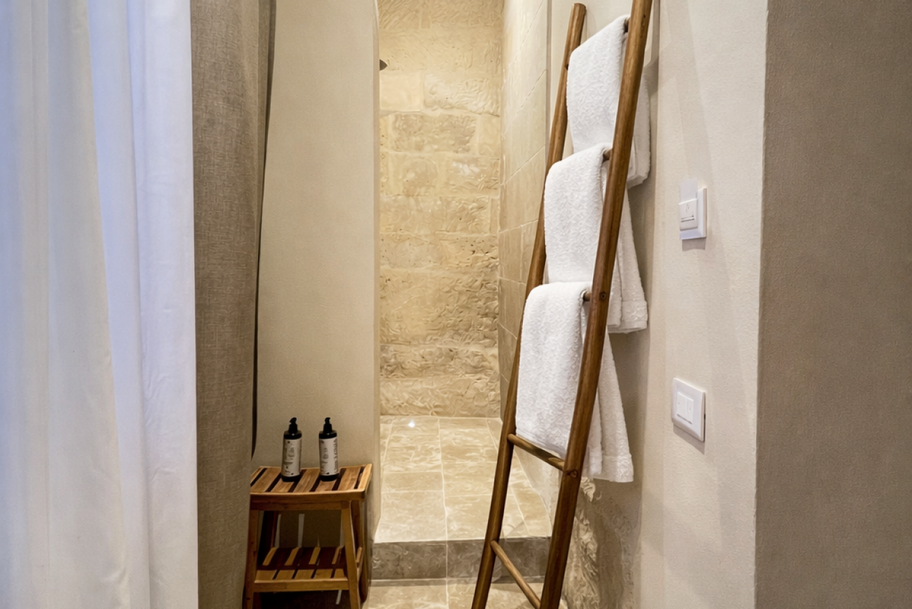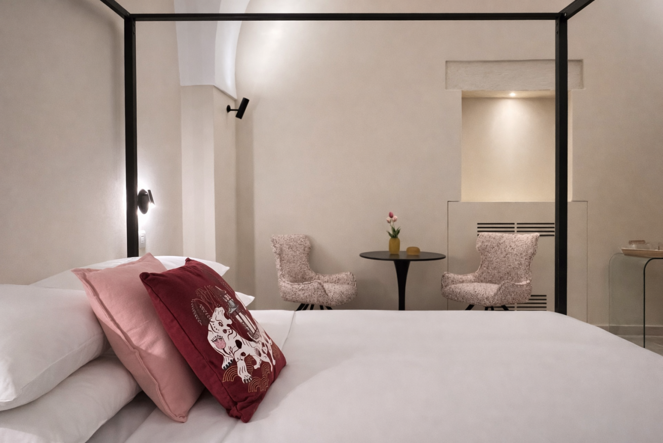 Un luogo essenziale ed elegante, dove il silenzio della pietra incontra il comfort contemporaneo, creando un’atmosfera intima e rigenerante.